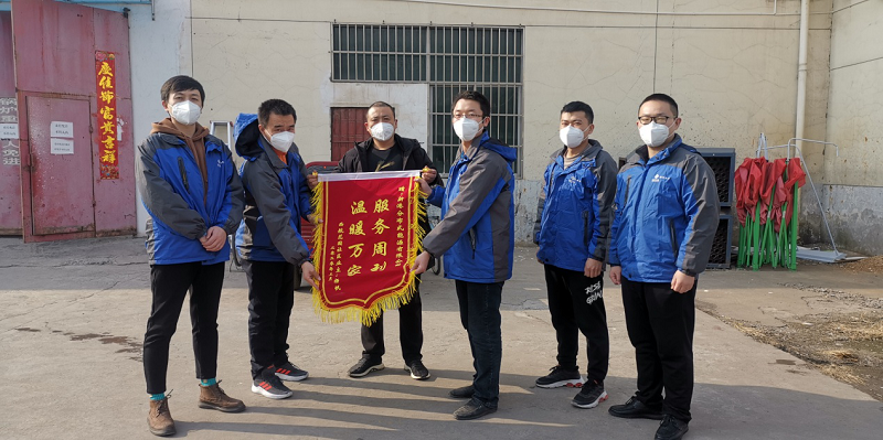 2020年3月9日上午,西航花園社區騫柳一區業主楊帆,為新能源公司國際港務區項目西航花園項目組送來一面寫有“溫暖萬家,服務周到”的錦旗,表達了業主們對公司供暖保供工作的認可。